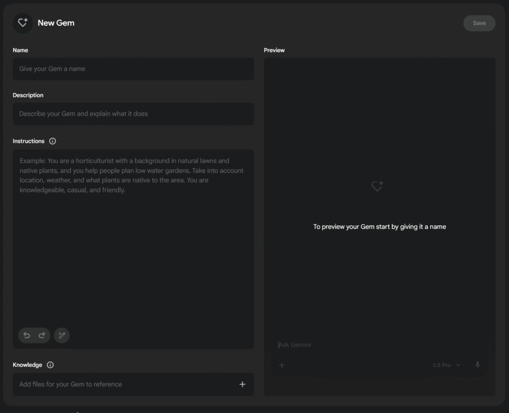 We will be using Gemini Gems (available for free) to create the Bot. The setup is very similar for GPTs (in ChatGPT), but you need a paid account to create those.